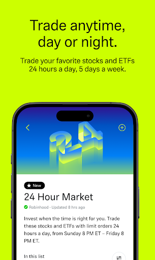 مارکیٹ کے باقاعدہ اوقات سے باہر ٹریڈنگ کے ساتھ اضافی، منفرد خطرات ہیں جن سے آپ کو سرمایہ کاری کا فیصلہ کرنے سے پہلے آگاہ ہونا چاہیے، بشمول کم لیکویڈیٹی کا خطرہ، بڑھتا ہوا اتار چڑھاؤ، زیادہ پھیلاؤ، اور قیمتوں کی غیر یقینی صورتحال۔ Robinhood 24 Hour Market اتوار 8 PM ET سے جمعہ 8 PM ET تک ہے۔