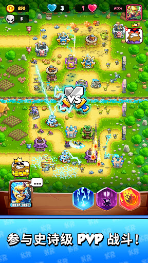 冲入 PVP 战斗!在激烈的2人PvP对决中与真实玩家对战,每一个战略决策都至关重要。建造你的城堡防御,对敌人倾泻火海,召唤援军来扭转战局。发起攻击以压倒你对手的塔防,用卓越的战略思维击败他们,证明你是终极PvP指挥官!只有一人能够胜出 —— 那会是你吗?